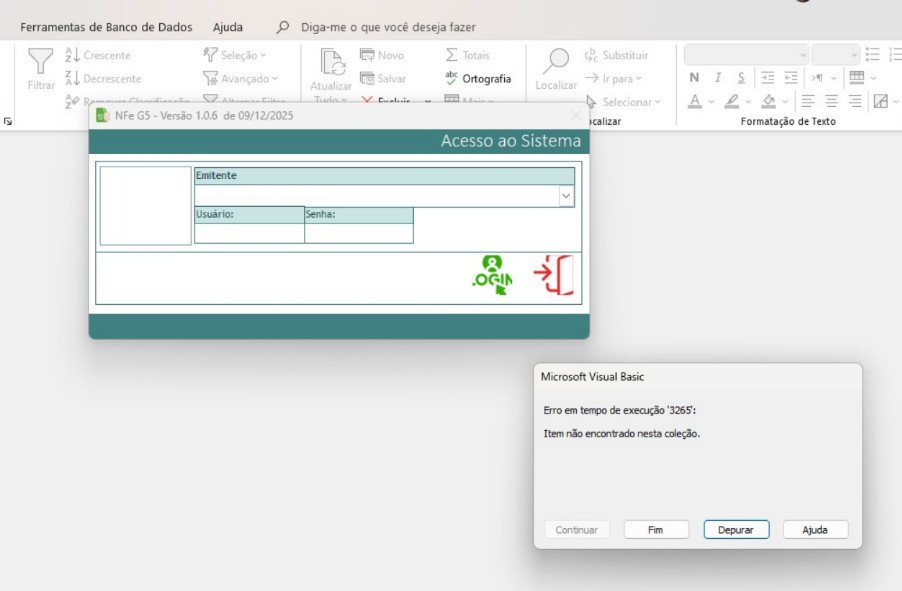 Quando o NFe G5 é aberto e apresenta o erro em referência, significa dois possíveis problemas: