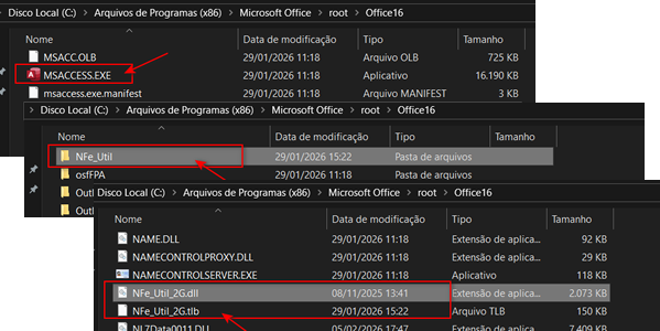 Assim, a dll e a pasta da NFe_util devem estar presentes na mesma pasta aonde localizado o arquivo MSAccess.exe