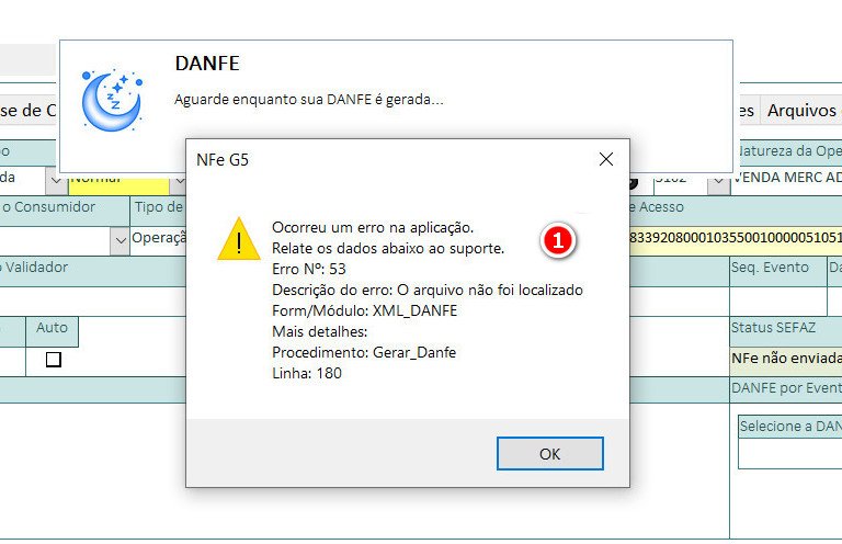 O erro em referência é causado quando o NFe G5 não conseguir criar o xml necessário para a geração da DANFE.