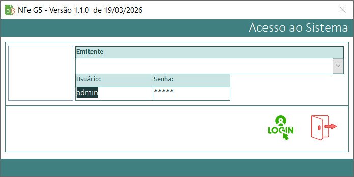 Assim para acessar o NFe G5 você deverá informar apenas o usuário e a senha.