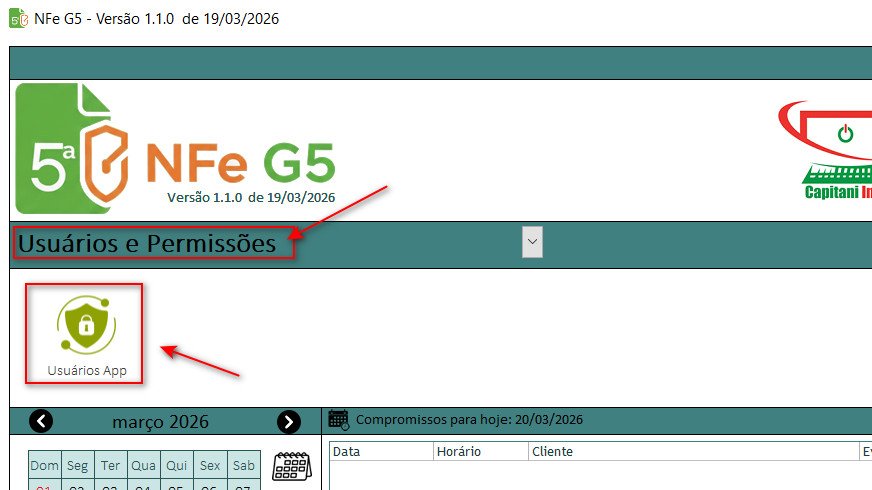 - Cada usuário deverá ter seu perfil cadastrado, segundo suas atribuições de utilização do NFe G5